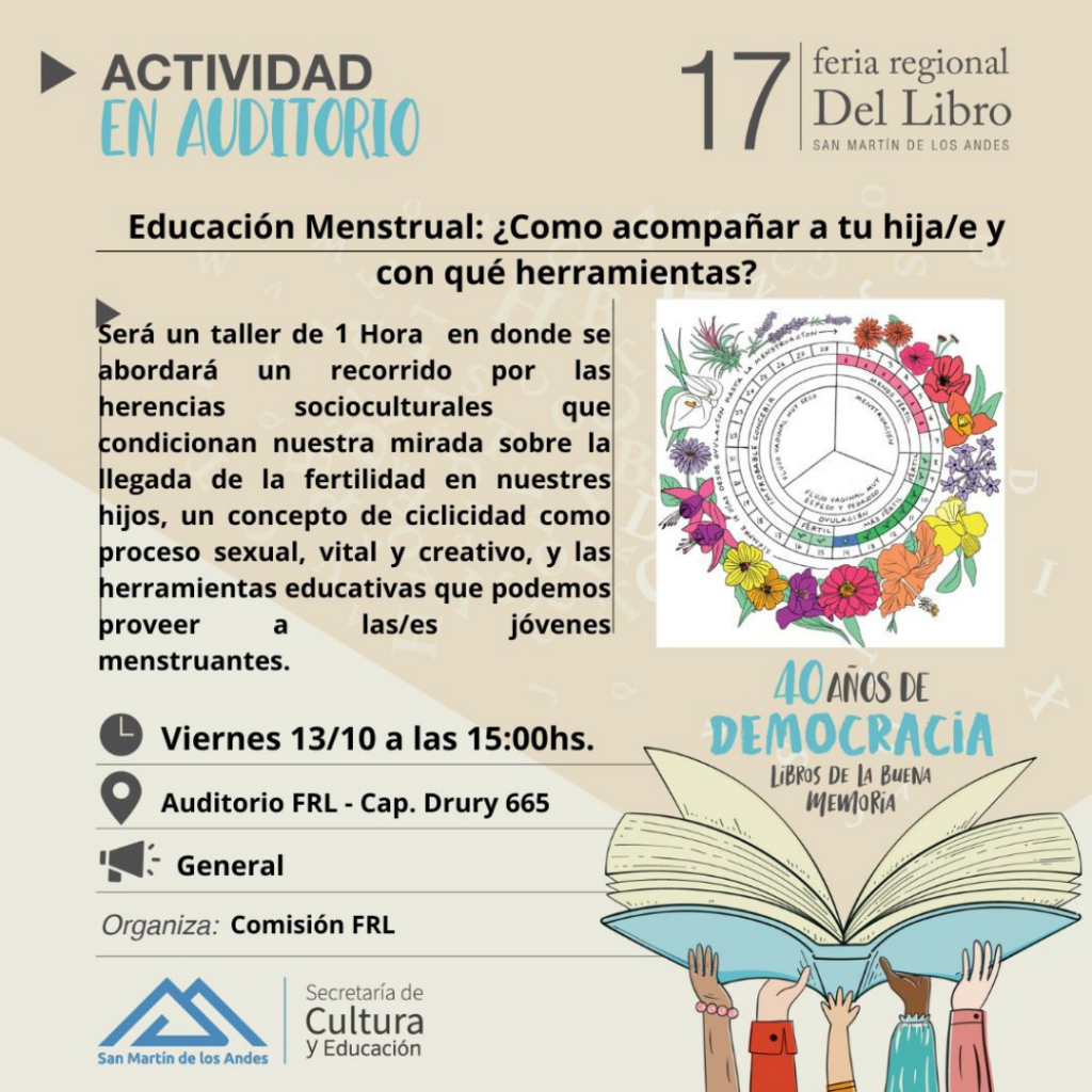 15:00 hs. Zoe Maiten. Taller “Educación Menstrual: ¿Cómo acompañar a tu hija/e y con qué herramientas?”