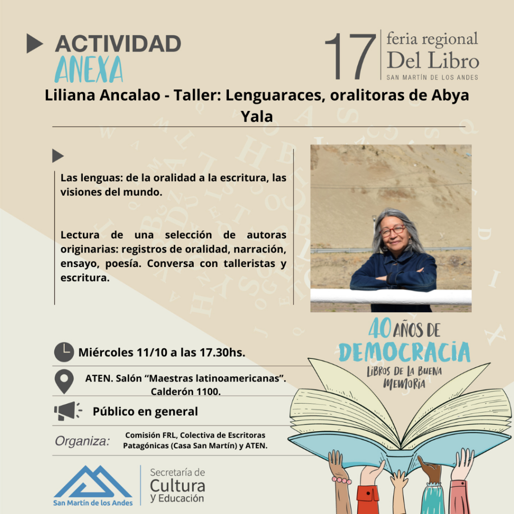 Miércoles 11 – 17.30 hs. ATEN. Liliana Ancalao. Taller: “Lenguaraces, oralitoras de Abya Yala”.
