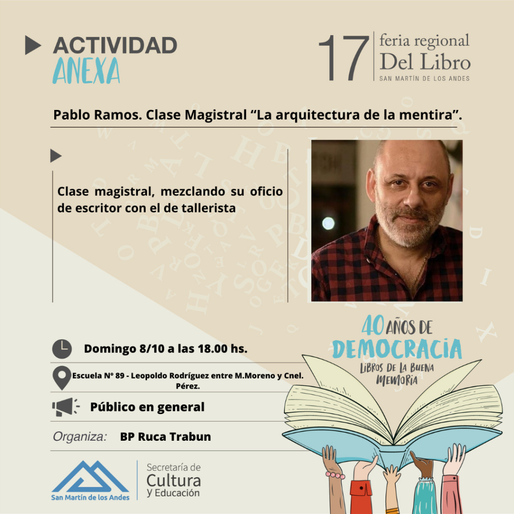 Domingo 8 – 18 hs. Escuela N° 89. Pablo Ramos. Clase Magistral “La arquitectura de la mentira”.