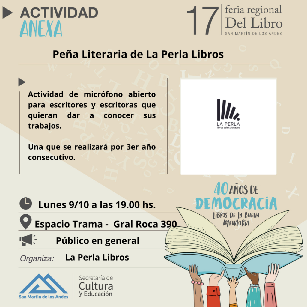 Lunes 9 – 19 hs. Espacio Trama. Peña Literaria de La Perla Libros.