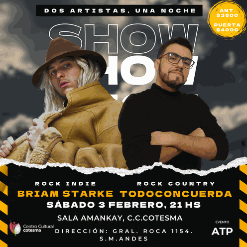 Entradas en venta de martes a domingo de 17hs a 23hs en la Boleteria del Centro Cultural Cotesma.