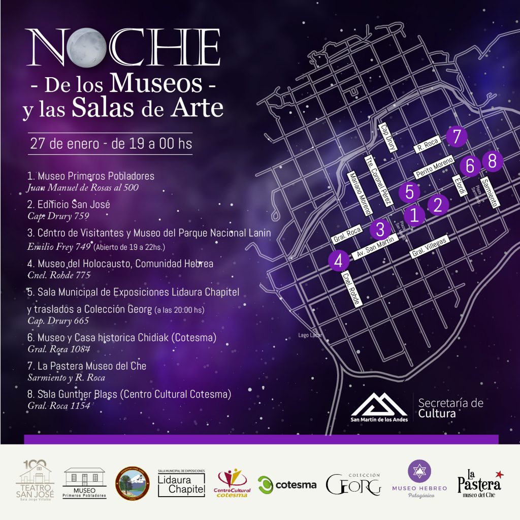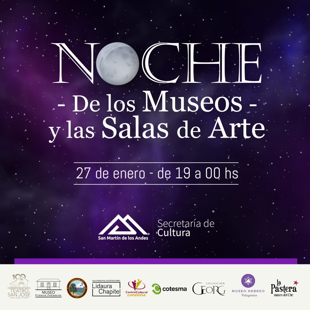 Este sábado 27 de enero , de 19 a 00 hs, se podrá disfrutar de una nueva edición de la Noche de los Museos y las Salas de Arte, un evento de entrada libre que consiste en abrir todos los museos y salas de arte de la ciudad, con recorridos espontáneos o visitas guiadas.