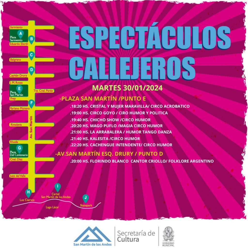 Espectáculos Callejeros: agenda semanal 29/1 al 4/2