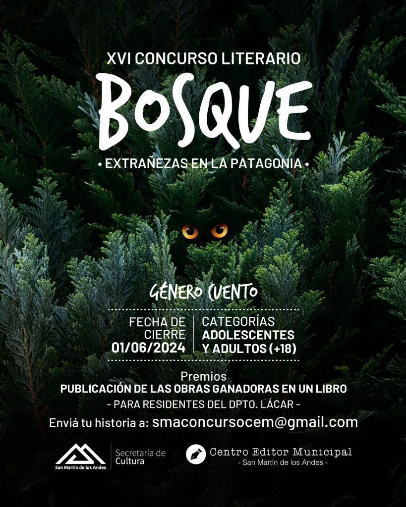 El Centro Editor Municipal y la Secretaría de Cultura te invitan a participar del XVI Concurso literario de cuentos con temática “Bosque, extrañezas en la Patagonia”.