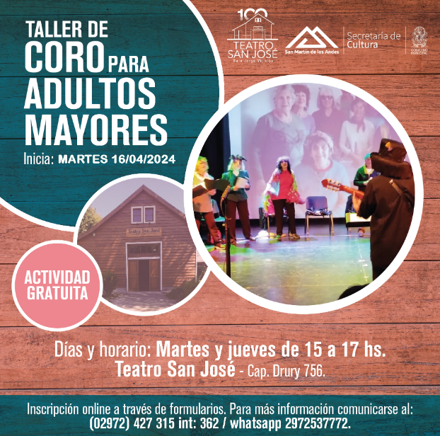 Inicia el taller municipal de coro para adultos mayores. Las inscripciones ya se encuentran abiertas mediante formulario online y los encuentros se desarrollarán los martes y jueves, de 15 a 17hs.