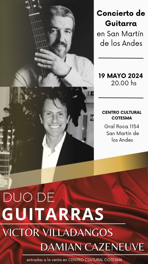 El reconocido y afamado guitarrista argentino Víctor Villadangos se encontrará para conformar un dúo con el guitarrista neuquino Damián Cazeneuve, y brindarán dos conciertos en la provincia del Neuquén.