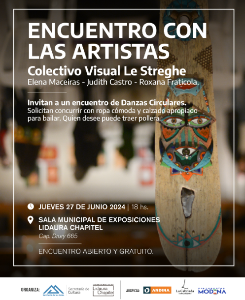 En el marco de la Convocatoria Anual de Artistas Visuales, el Colectivo Visual Le Streghe, que exhibe su obra actualmente en la Sala Lidaura Chapitel, invita a un encuentro de danzas circulares.