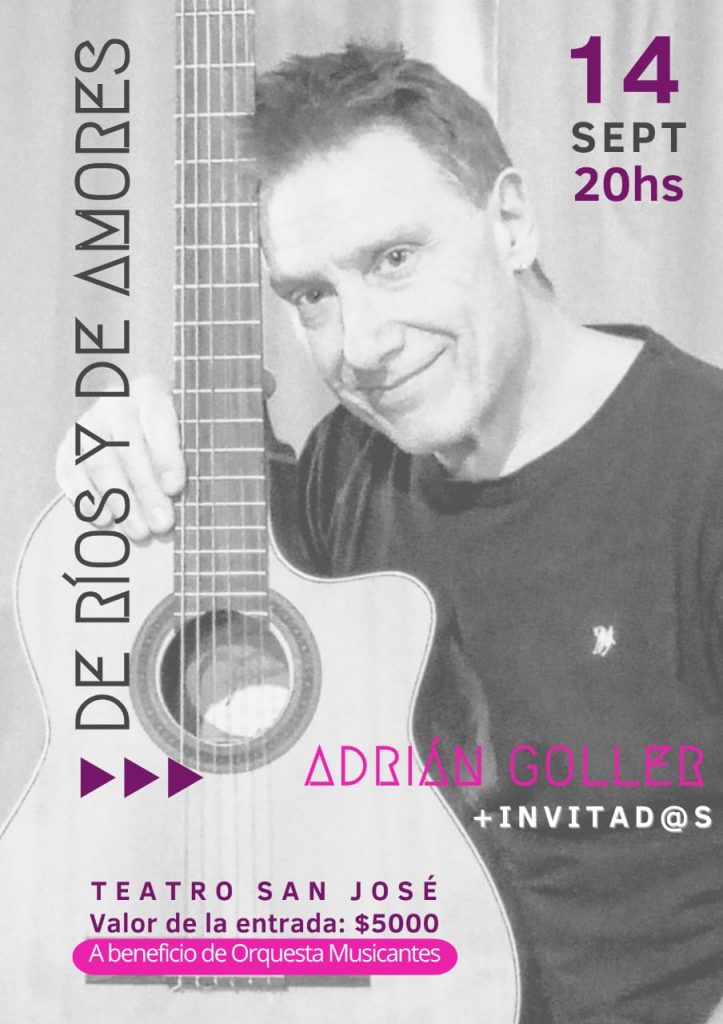 Adrian Goller se presentará el próximo sábado 14 de septiembre, a las 20hs, en el Teatro San José, con un imperdible espectáculo musical a beneficio de la Orquesta Musicantes.