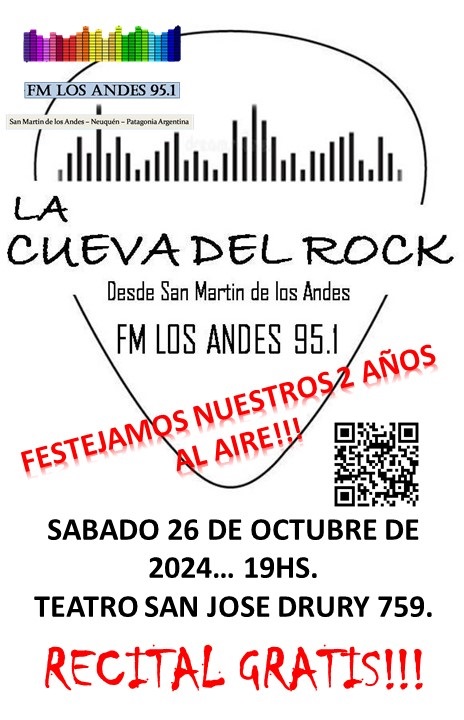 El sábado 26 de octubre, en el teatro San José, a partir de las 19 hs vamos a realizar un recital de rock GRATUITO. Se van a presentar: @el_galgo6 músico y compositor de nuestra ciudad. Y de la ciudad de Neuquén @babayagarock con todo el rock neuquino.