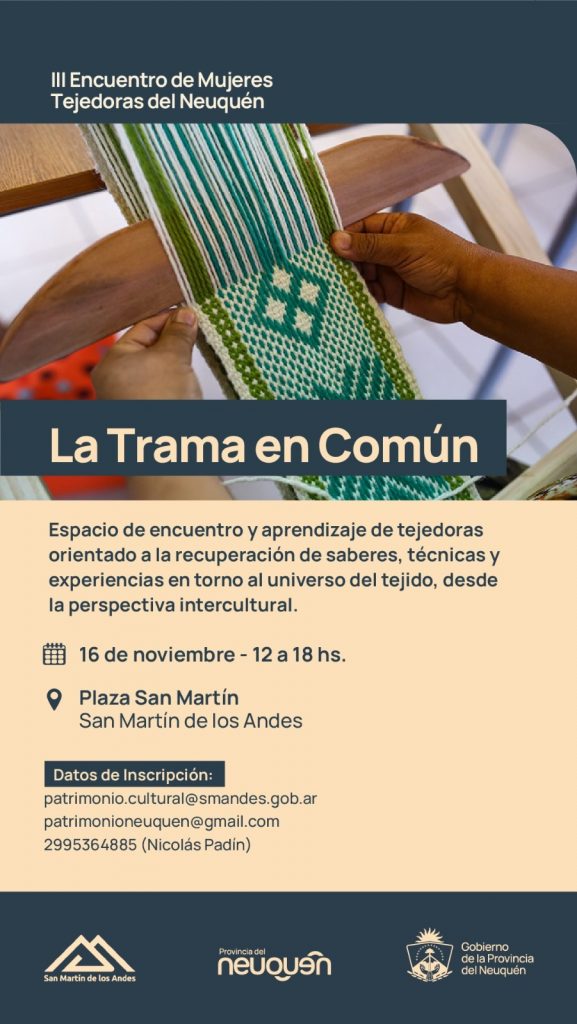 La actividad, que comenzará a las 12 horas en la plaza San Martín de la localidad cordillerana, tiene como finalidad generar un espacio de encuentro y aprendizaje de tejedoras orientado a la recuperación de saberes, técnicas y experiencias en torno al universo del tejido, desde una perspectiva intercultural.