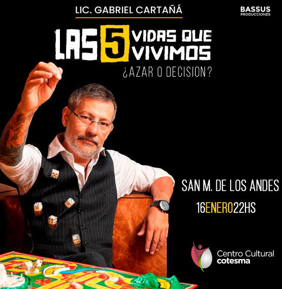 El jueves 16 de enero de 2025, a las 22hs, volvemos a tener una noche especial en nuestra querida Sala Amankay, el Lic. Gabriel Cartañá, presenta “LAS 5 VIDAS QUE VIVIMOS” ¿Azar o decisión?…