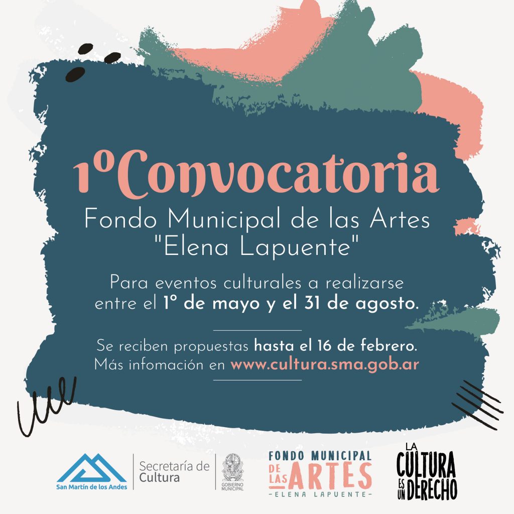 El Fondo Municipal de las Artes “Elena Lapuente” es una nueva política cultural de San Martín de los Andes destinada a estimular, proteger e impulsar la creación y producción artística de hacedores culturales de la ciudad; facilitando el acceso al arte a todos los miembros de la comunidad y propiciando la formación de público, la diversidad cultural y el turismo cultural.