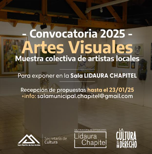 La Secretaría de Cultura de San Martín de los Andes convoca a artistas visuales locales a participar de la Exposición Abierta y Colectiva que se desarrollará en la Sala Lidaura Chapitel durante el mes de febrero de 2025.