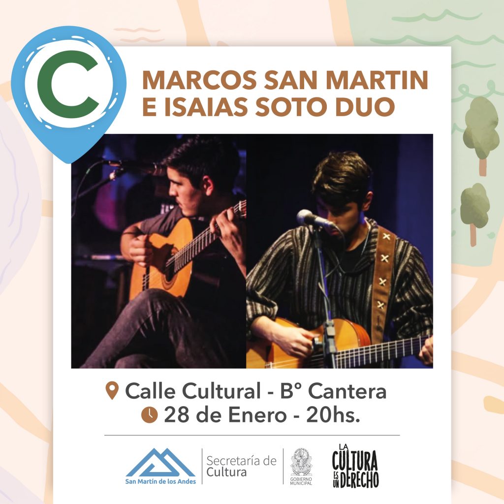 Este martes 28 de enero a las 20 hs, te invitamos al Barrio Cantera para disfrutar de “Serenata pa’ los barrios”, una presentación especial del dúo conformado por Marcos San Martín e Isaías Soto.
