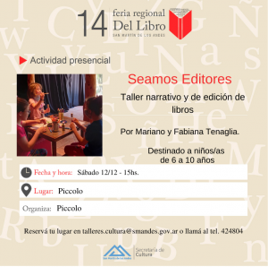 - “Seamos editores” – Taller narrativo y de edición para niños y niñas: sábado 12 de diciembre – 15hs – Piccolo