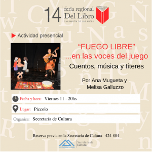 - “Fuego libre”: en las voces del juego – Ana Mugueta y Melisa Galluzzo: viernes 11 de diciembre – 20hs – Piccolo