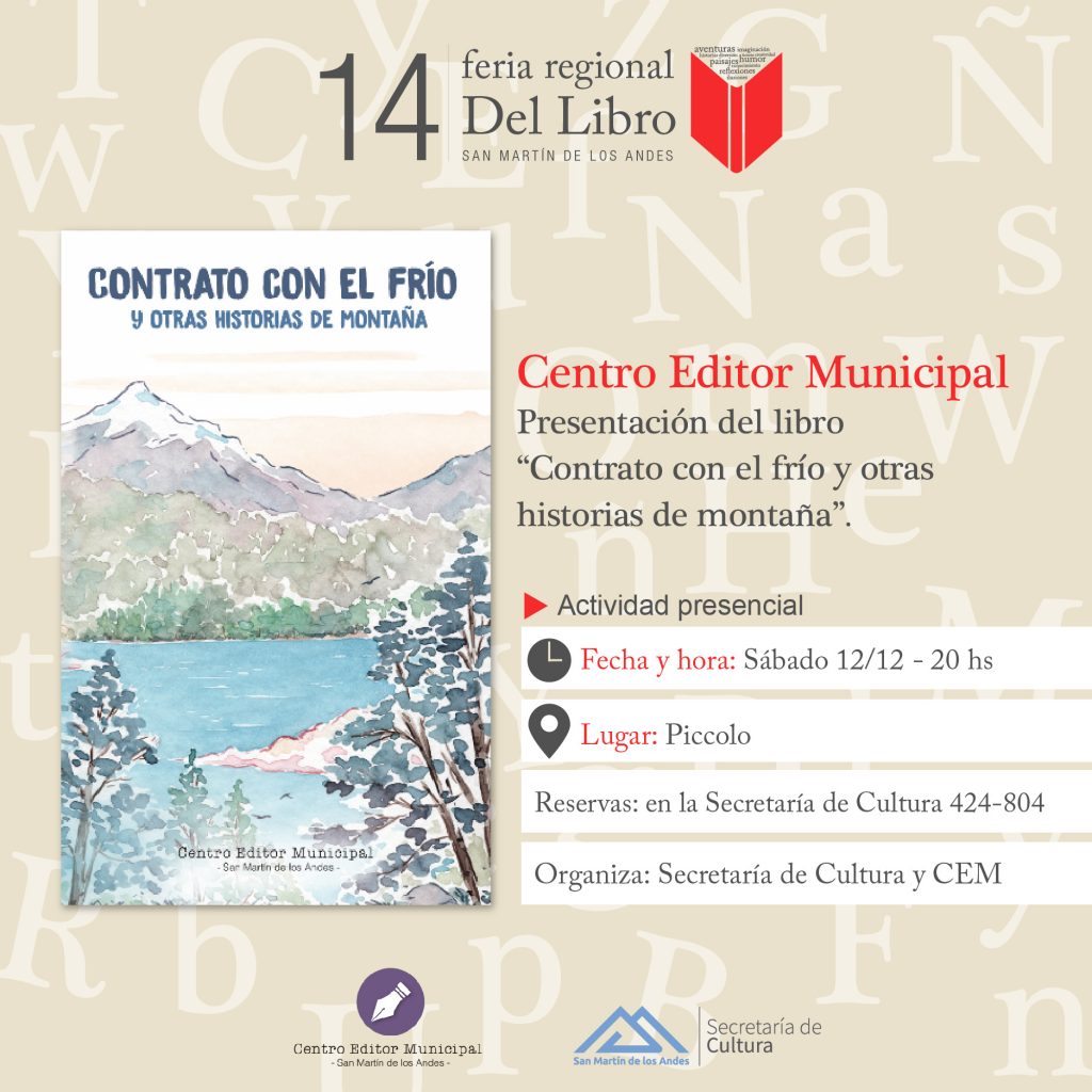 - “Contrato con el frío y otras historias” – Presentación libro Centro Editor Municipal: sábado 12 de diciembre – 20hs – Piccolo