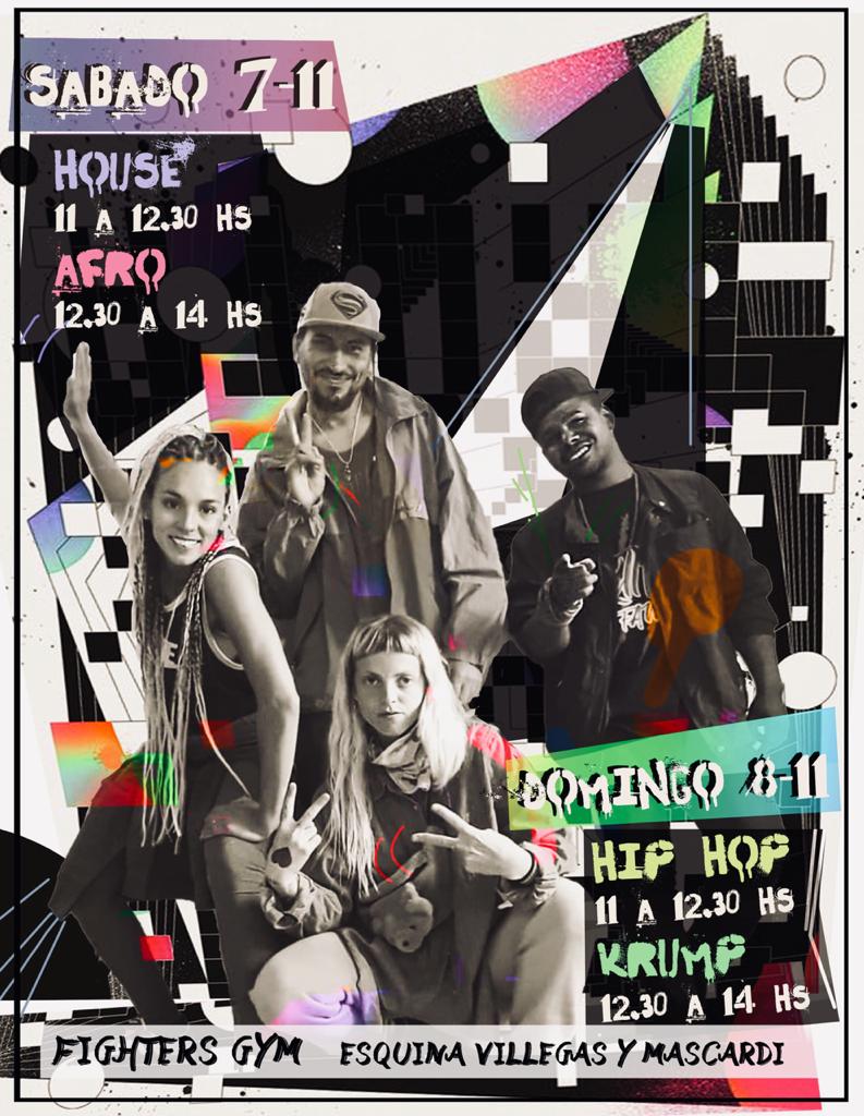 4 profesores de danza dictaran dos jornadas intensivas en las que se combinan diferentes ritmos como: Hip Hop, House, Afro y Krump