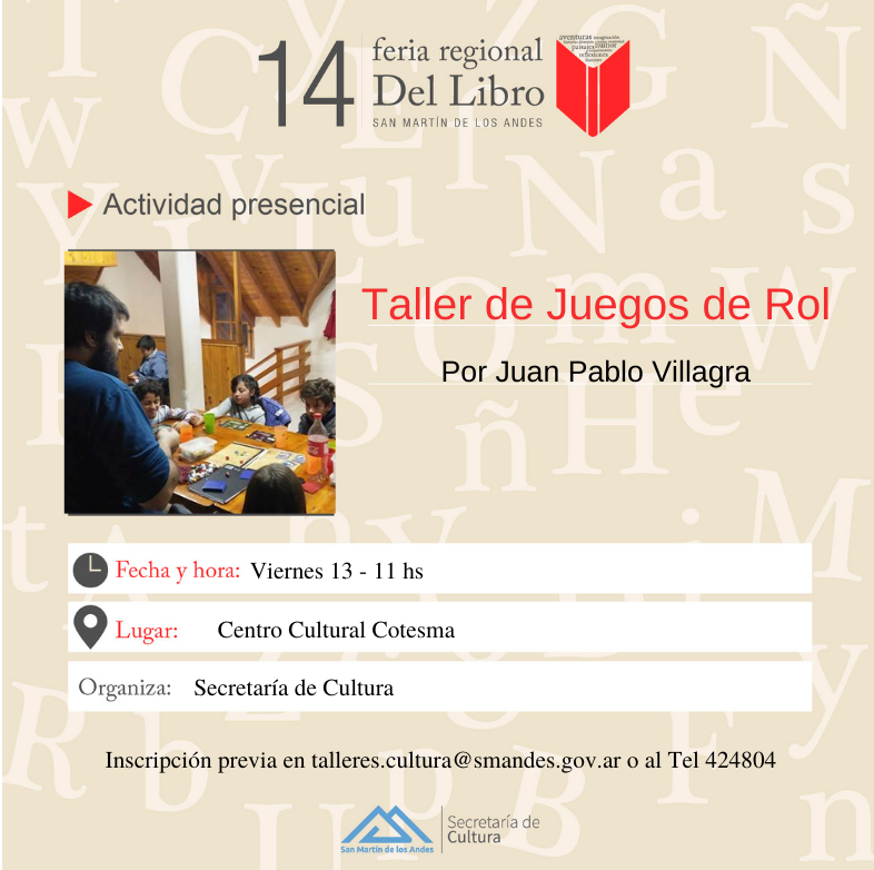 Reservá tu lugar escribiendo a talleres.cultura@smandes.gov.ar o llamando al 424-804