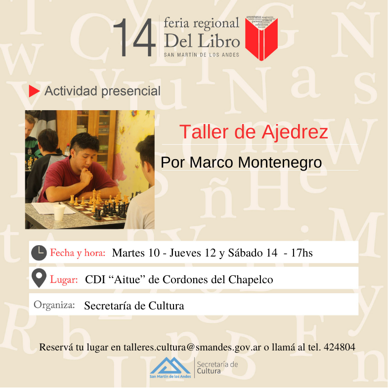El taller será un lugar de encuentro para los fanáticos/as del ajedrez o para quienes quieran fanatizares de este “juego mente”. Habrá partidas rápidas, simultáneas y problemas estratégicos para resolver.