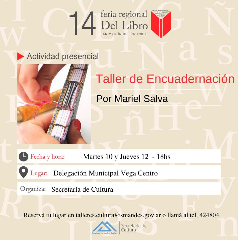 Reservá tu lugar escribiendo a talleres.cultura@smandes.gov.ar o llamando al 424-804
