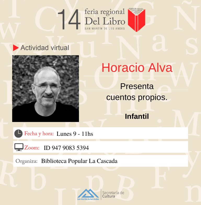 Horacio Alva (Bahía Blanca, 1966 ) desarrolló su escritura inspirándose en Horacio Quiroga, Ray Bradbury y Richard Bach. En 2004 publicó “Pulpino”, su primer cuento infantil. Luego siguieron varias otras publicaciones del mismo género y las novelas fantásticas “El origen del mañana” y “En el presente de Juan”.