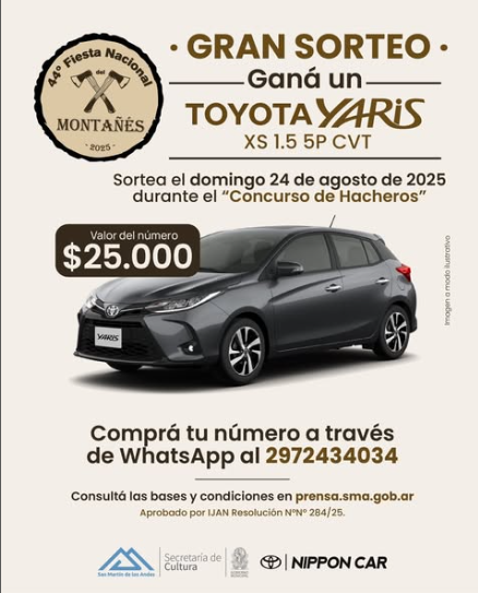 Ya está en marcha el Gran Sorteo de la 44ª Fiesta Nacional del Montañés. Comprando tu número participas por una Toyota Yaris XS 1.5 5P CVT.