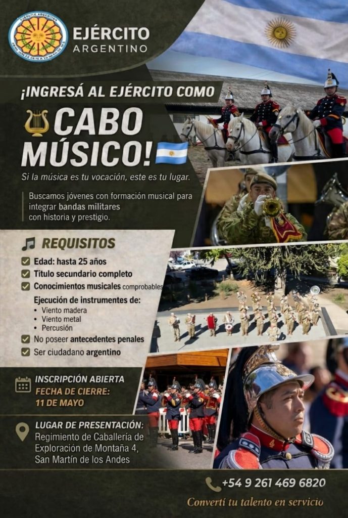 Nueva convocatoria para cabo músico en el Ejército Argentino